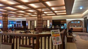 周りにリラクゼーションや食堂、岩盤浴へのゲートなどがあります。