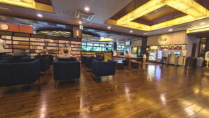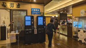 入ってロビーの左奥に食事処、突き当りに岩盤浴、