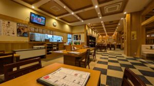 パチンコ屋、ドン・キホーテ、DAISOなどが入った建物内に有る。